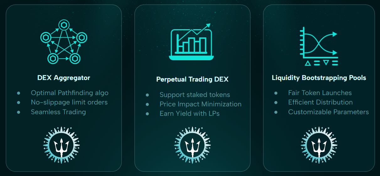 1. **DEX Aggregator**: Thetis's optimized aggregation algorithm finds the most optimal paths to deep liquidity pools across DeFi protocols. This ensures the best trade execution, minimizing slippage, and maximizing price efficiency for users.